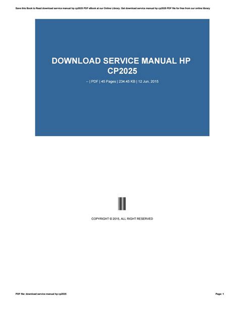 JAU - Download Hp 2025 Service Manual Kobo Open Library